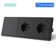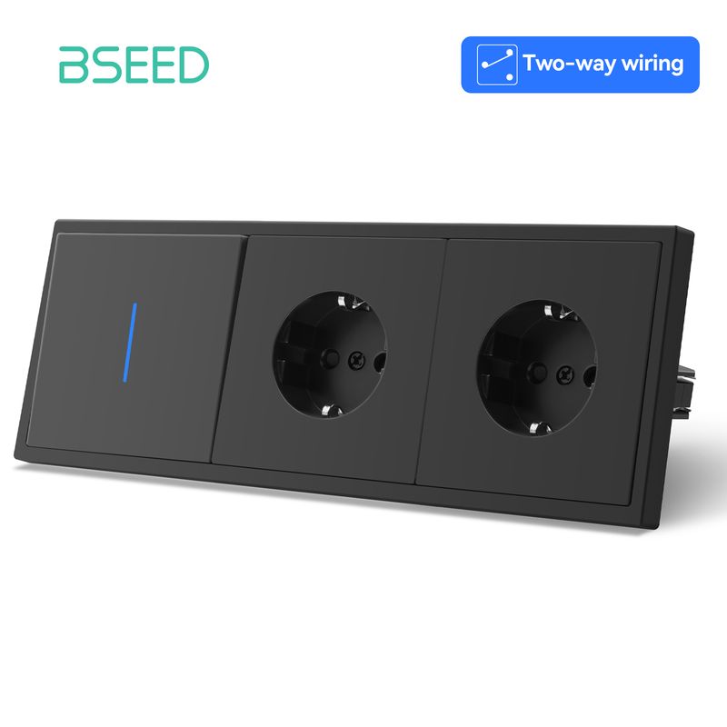 BSEED Large Button Switch LED Indicator 2Way Wall Light Switches USB Phone Charge Port Wall Power EU Sockets Black E-Series