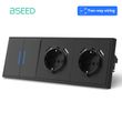 BSEED Large Button Switch LED Indicator 2Way Wall Light Switches USB Phone Charge Port Wall Power EU Sockets Black E-Series