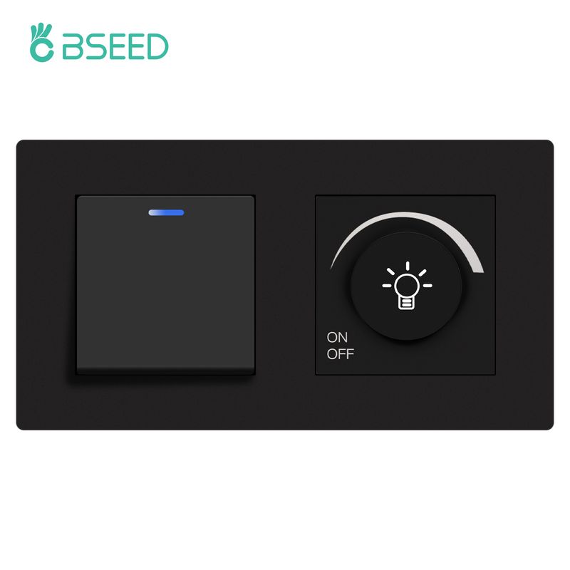 BSEED Normal Light Dimmer Switch Rotary Knob Dimmer Switch Adjustable Brightness Controller Plastic Frame Button Dimmer Switch