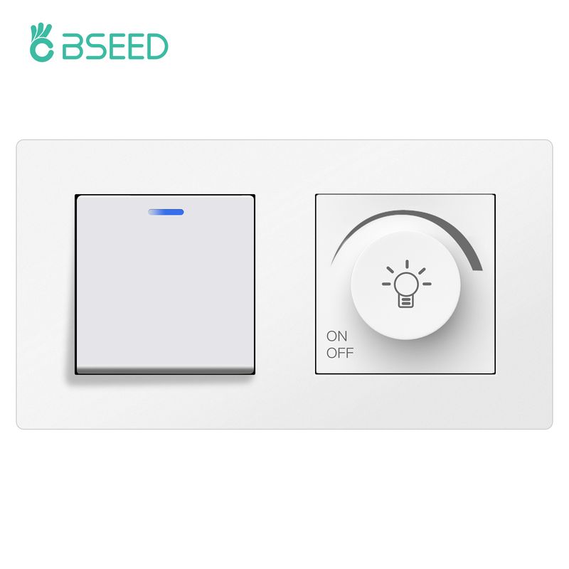 BSEED Normal Light Dimmer Switch Rotary Knob Dimmer Switch Adjustable Brightness Controller Plastic Frame Button Dimmer Switch