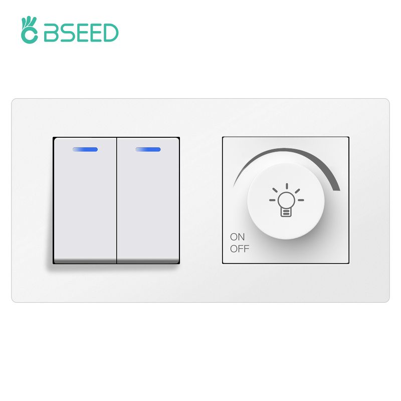 BSEED Normal Light Dimmer Switch Rotary Knob Dimmer Switch Adjustable Brightness Controller Plastic Frame Button Dimmer Switch