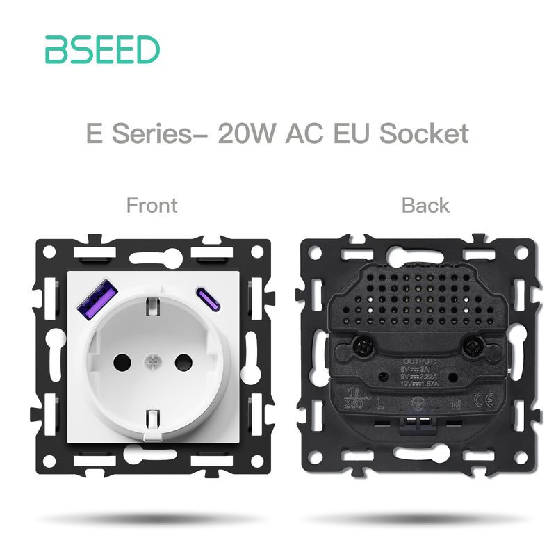 BSEED Switch DIY Modules Light Switch Parts White Glass Frame DIY Combination Wall Sockets TV CAT6 USB-C Charge Key E-Series