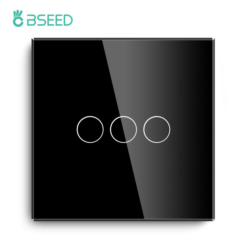 Bseed Mvava Touch Light Switch 1/2/3 Gang 1/2Way Intermediate Stair Switch EU Power Sensor Switches Black White Gold With Glass Panel