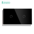 BSEED Touch Switches 1/2/3Gang 1Way Wall Light Switches Blue LED Backlight Glass Sensor Screen Home Switches Black EU Standard