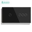 BSEED Touch Switches 1/2/3Gang 1Way Wall Light Switches Blue LED Backlight Glass Sensor Screen Home Switches Black EU Standard