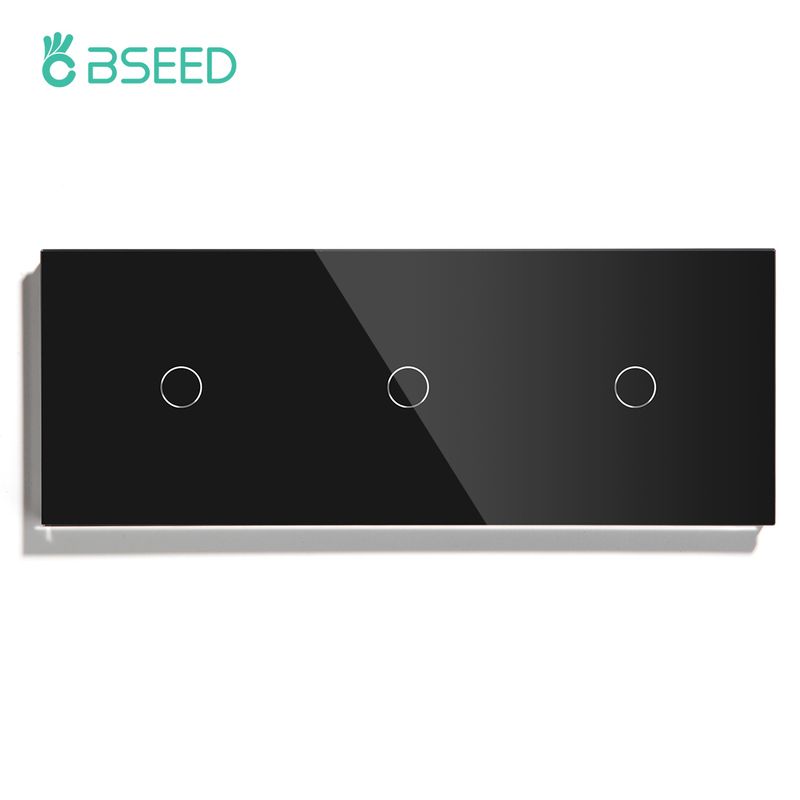 BSEED Touch Switches 1/2/3Gang 1Way Wall Light Switches Blue LED Backlight Glass Sensor Screen Home Switches Black EU Standard