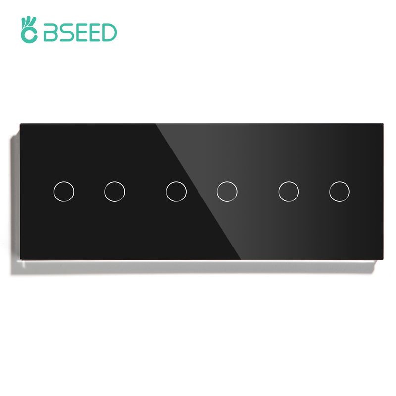 BSEED Touch Switches 1/2/3Gang 1Way Wall Light Switches Blue LED Backlight Glass Sensor Screen Home Switches Black EU Standard