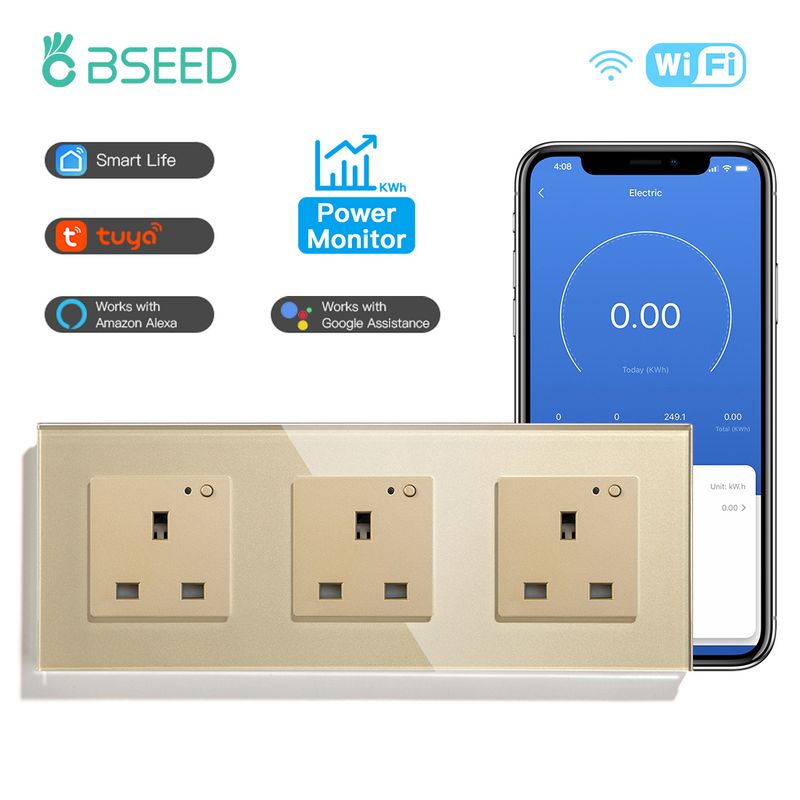 BSEED Wifi Smart Socket UK Wall Sockets Electrical Power Sockets Tuya Smart Life Google Alexa App Control Power Monitor Function