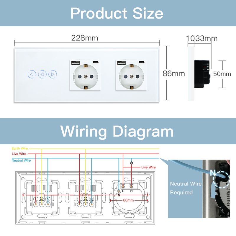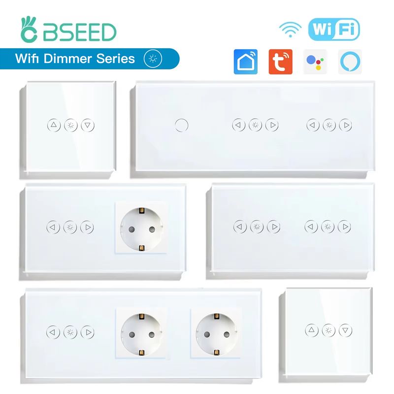 BSEED Wifi Smart Touch Dimmer Switches 1Gang Dimmable With Normal EU Type-c USB Sockets Tuya Smart Life Alexa App Control White