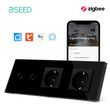 BSEED Zigbee 1/2/3Gang Wall Light Switches Tuya Smart Life Alexa Voice Control No Neutral Version Plus Normal EU Sockets