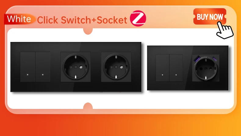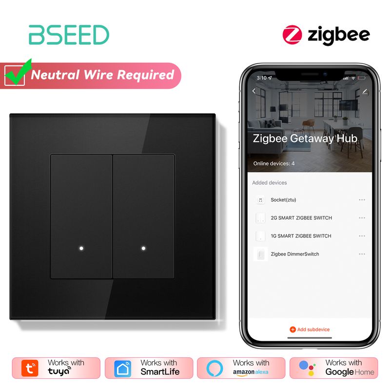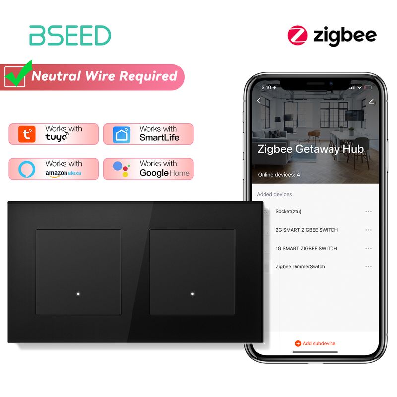 BSEED ZigBee Click Switches Series Wall Smart Click Light Switches Yellow Backlight Glass Frame Tuya APP Switch EU Standard