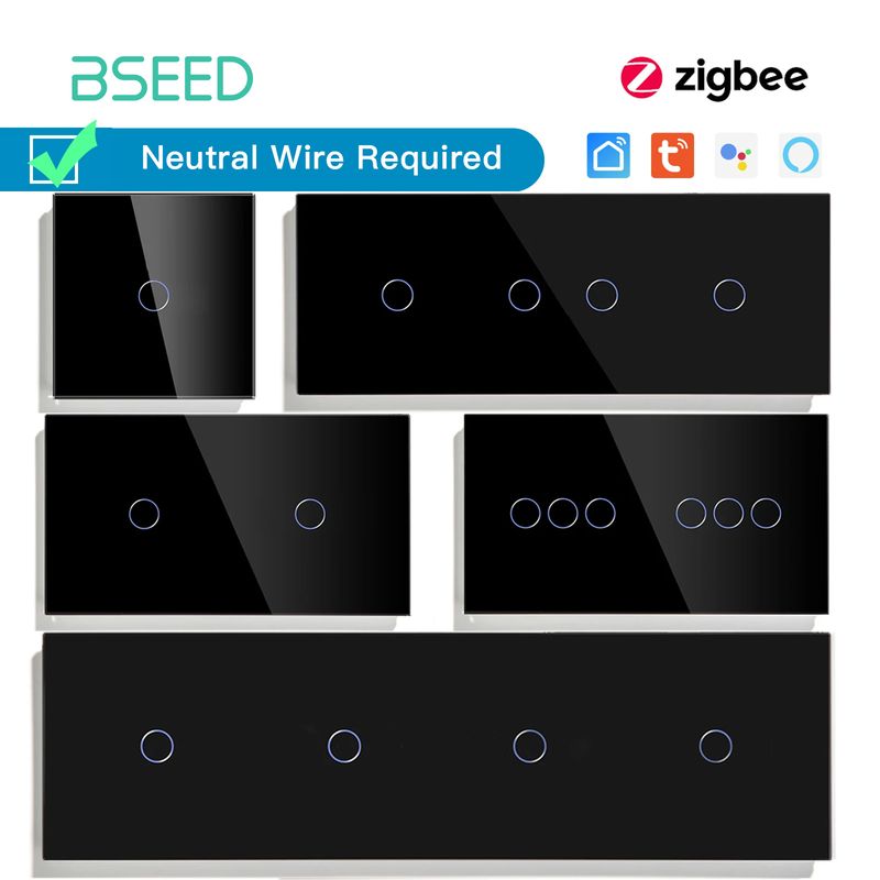 BSEED ZIGBEE Touch Switches Series Wall Smart Light Switches Blue LED Backlight Glass Sensor Screen Tuya APP Switches EU Standard