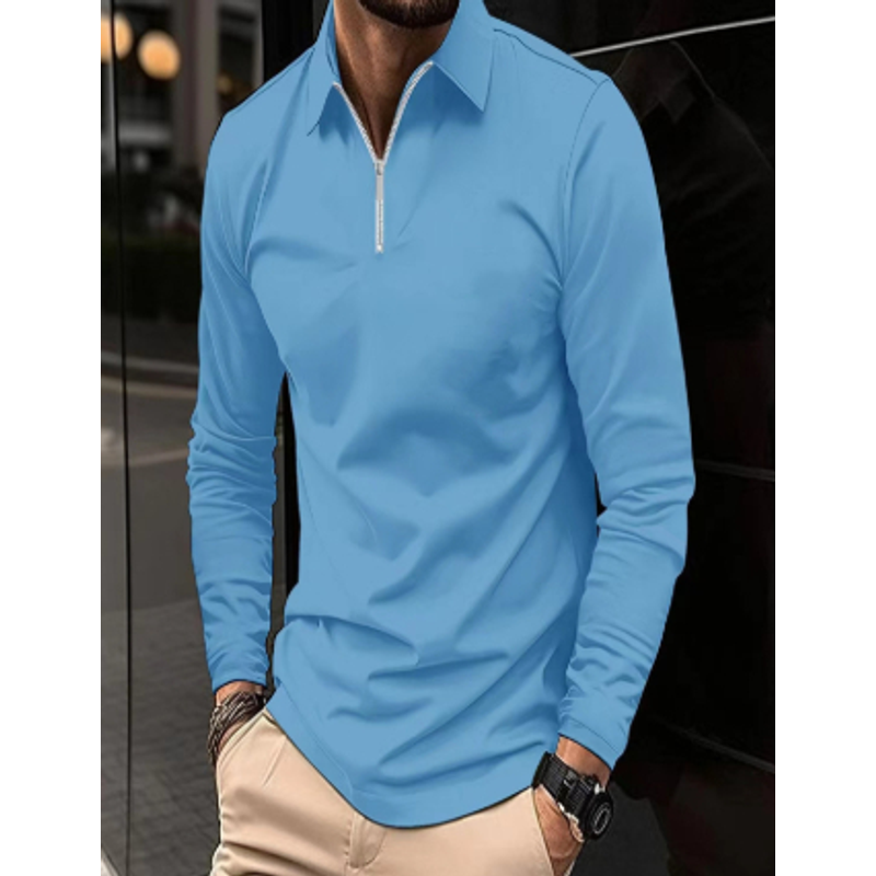 Buckle European And American Men's Daily Casual Polo Collar Long Sleeve Polo Wear Black XL