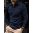 Buckle European And American Men's Daily Casual Polo Collar Long Sleeve Polo Wear Light Gray 3XL