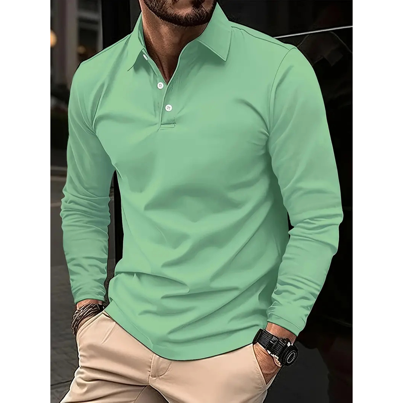 Buckle European And American Men's Daily Casual Polo Collar Long Sleeve Polo Wear YS701 S