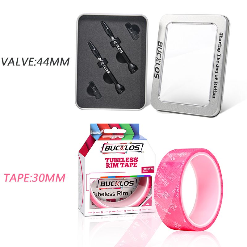 BUCKLOS 40MM 44MM Bike Tubeless Valve CNC Road Bicycle Presta Valve Bicycle Tubeless Rim Tape MTB F/V Valves Wheelset Tape Strip