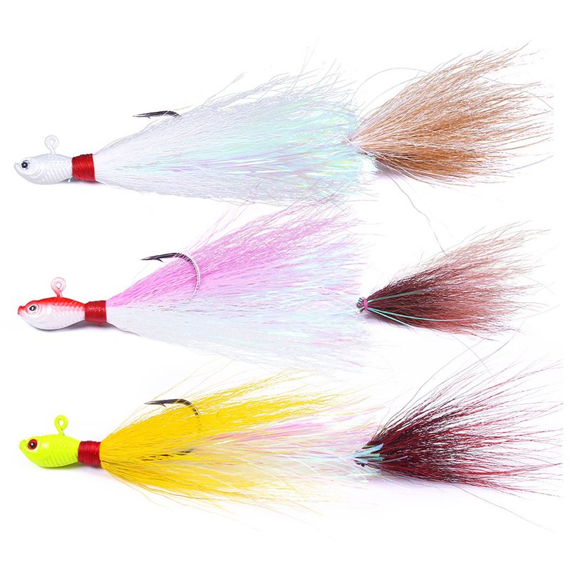 Bucktail Jigs Head Hook 3D Eyes Bait 7g 14g 28g 56g Deer Hair Feather Hook Beard Jigging Lure Fishing