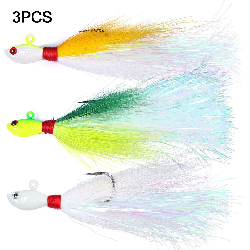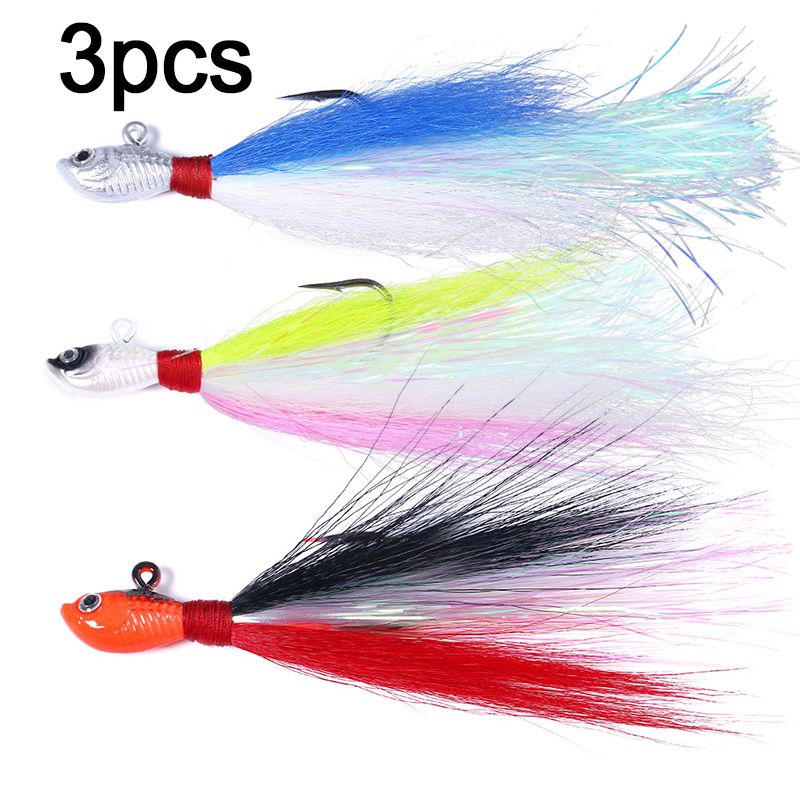 Bucktail Jigs Head Hook 3D Eyes Bait 7g 14g 28g 56g Deer Hair Feather Hook Beard Jigging Lure Fishing