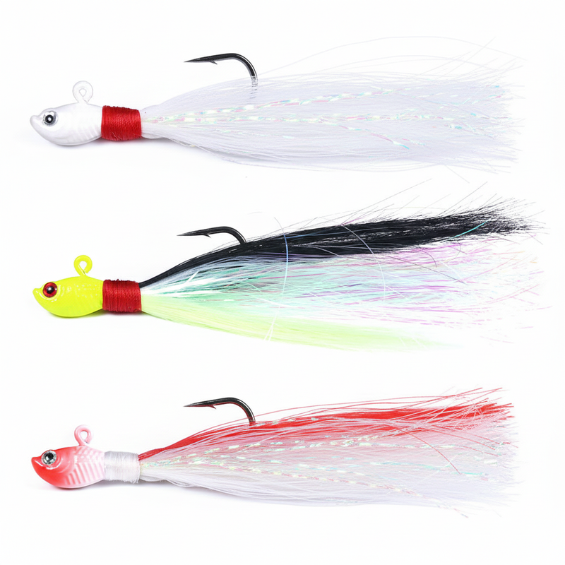 Bucktail Jigs Head Hook 3D Eyes Bait 7g 14g 28g 56g Deer Hair Feather Hook Beard Jigging Lure Fishing