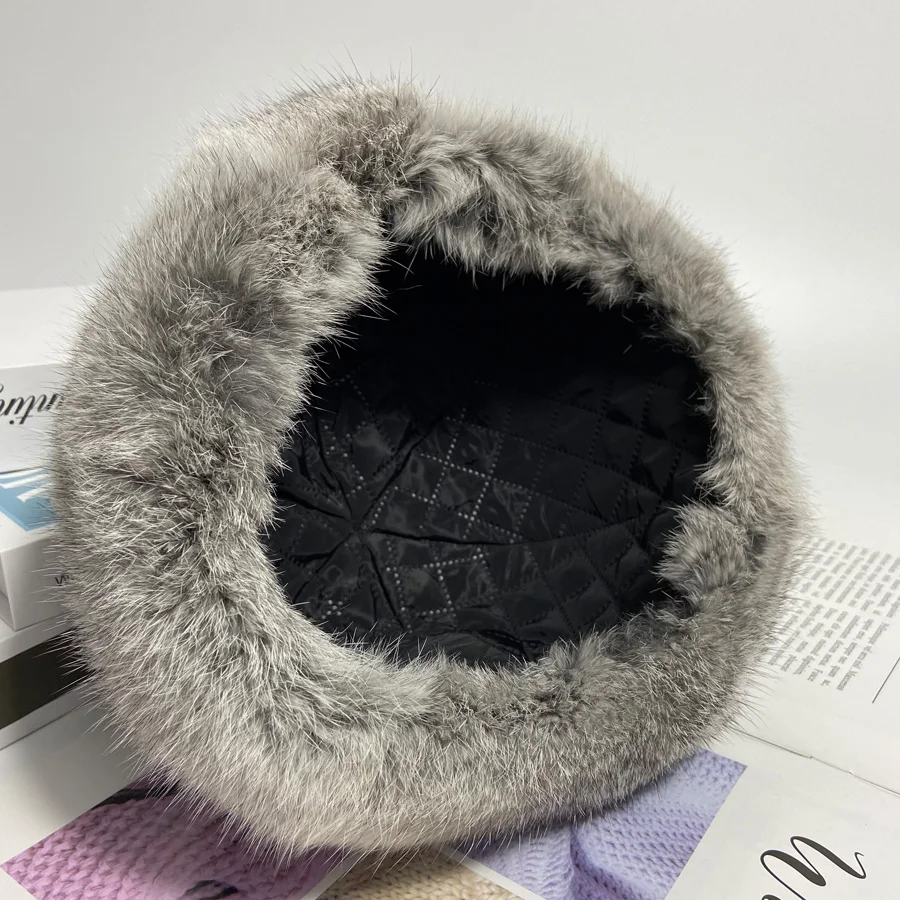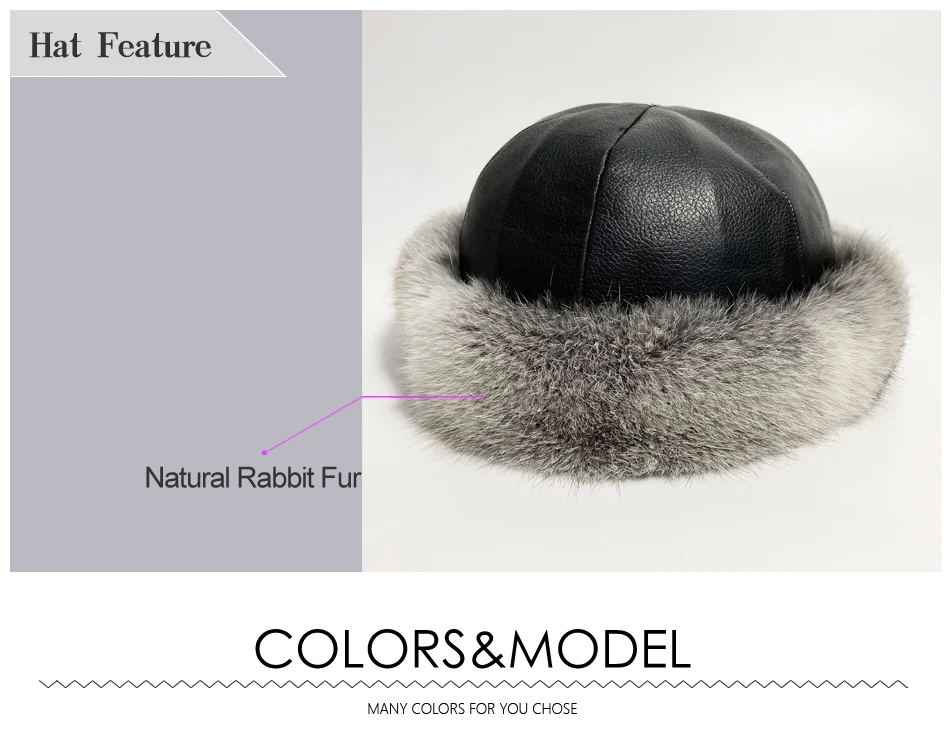 bunny hat women winter fluffy warm rabbit fur beanie hat men women leather caps real fur outdoor snow hat