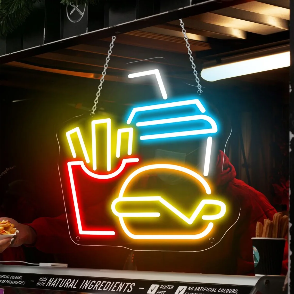 Burger Fries Drinks Neon Sign Burger Neon Restaurant Home Wall Decor Street Fast Food Coffee Shop Bar Art Decor Art Sign