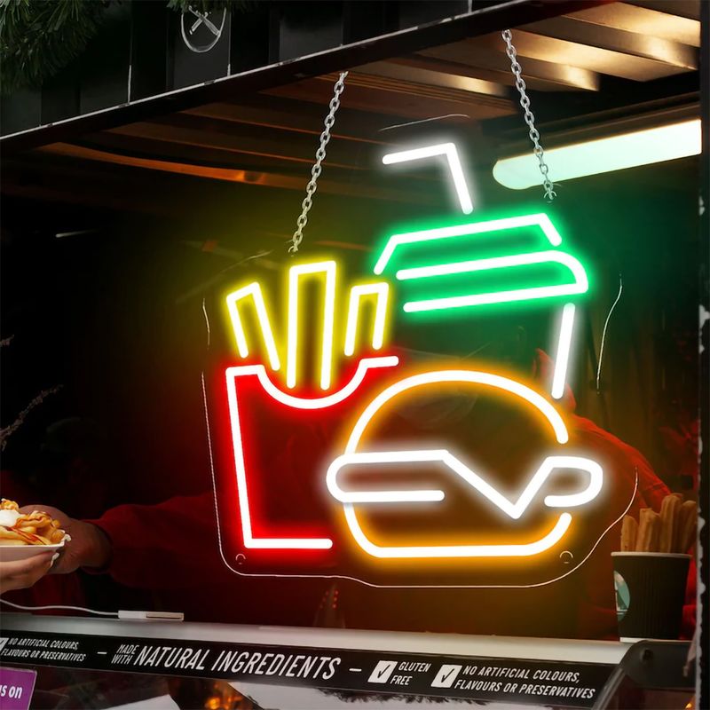 Burger Fries Drinks Neon Sign Burger Neon Restaurant Home Wall Decor Street Fast Food Coffee Shop Bar Art Decor Art Sign