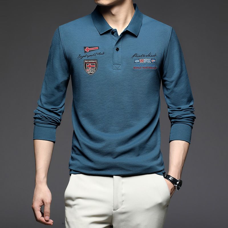 Business Dad Long-sleeved Spring And Autumn New Polo Bottoming Shirt Blue M