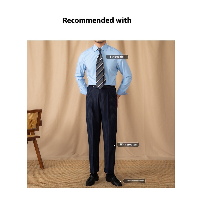 Business Formal Long Sleeved Shirt For Men Light Blue 2XL
