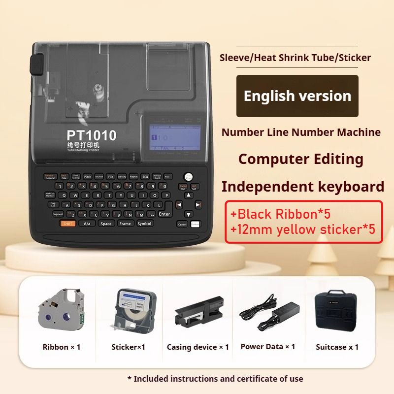 Business Industrial Use PT1010 Portable Thermal Transfer Label Printer Automatic Number Machine for Heat Shrink Wire Tube 220V