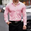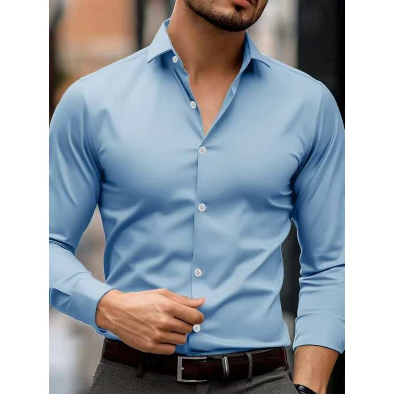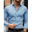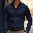 Business Lapel Shirt Solid Color Long Sleeve Casual Navy Blue M