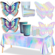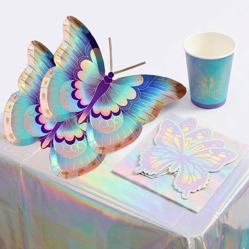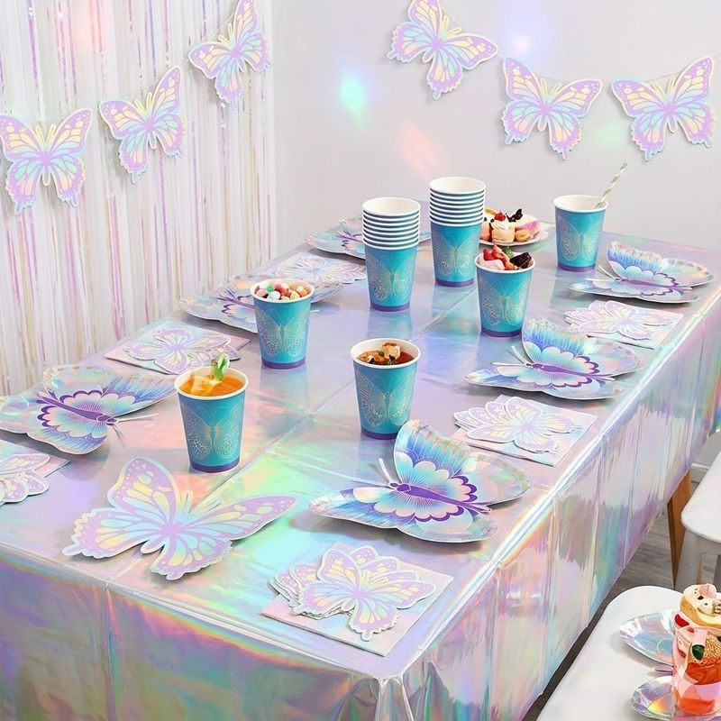 Butterfly Party Decor Colorful Glittering Tablecloths Butterfly-Shaped Plates Napkins Spring Picnic Camping Birthday Party Decor