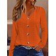 Button Front V Neck Long Sleeve Blouse, Women's Clothing
