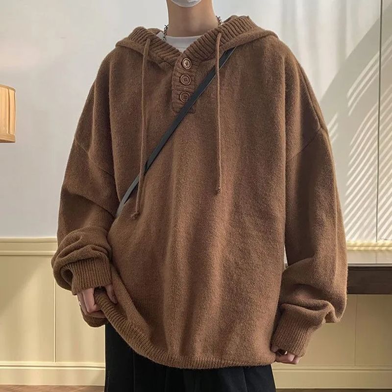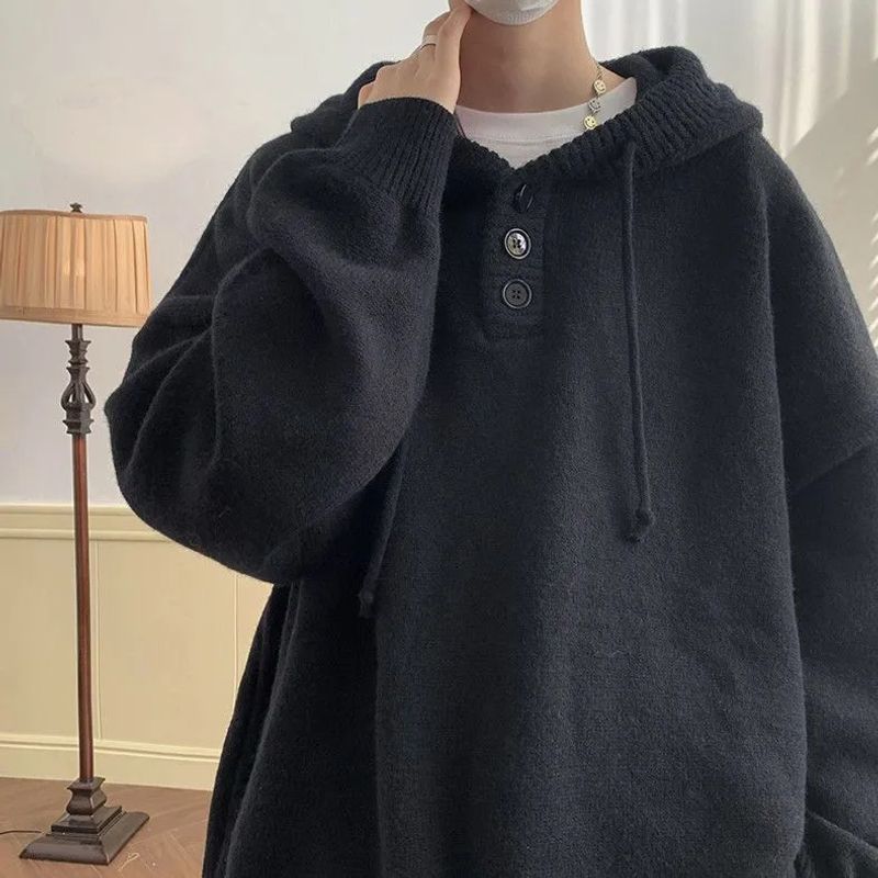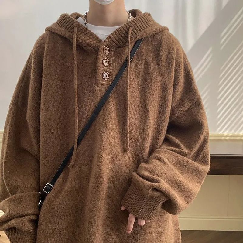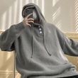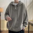Button Hooded Sweater Lazy Luxury Coat Loose Knitted Shirt Grey 2XL