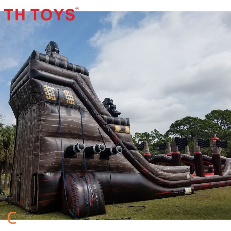 by ship to port, 20m long Commercial inflatable pirate ship water slide with slip summer toys