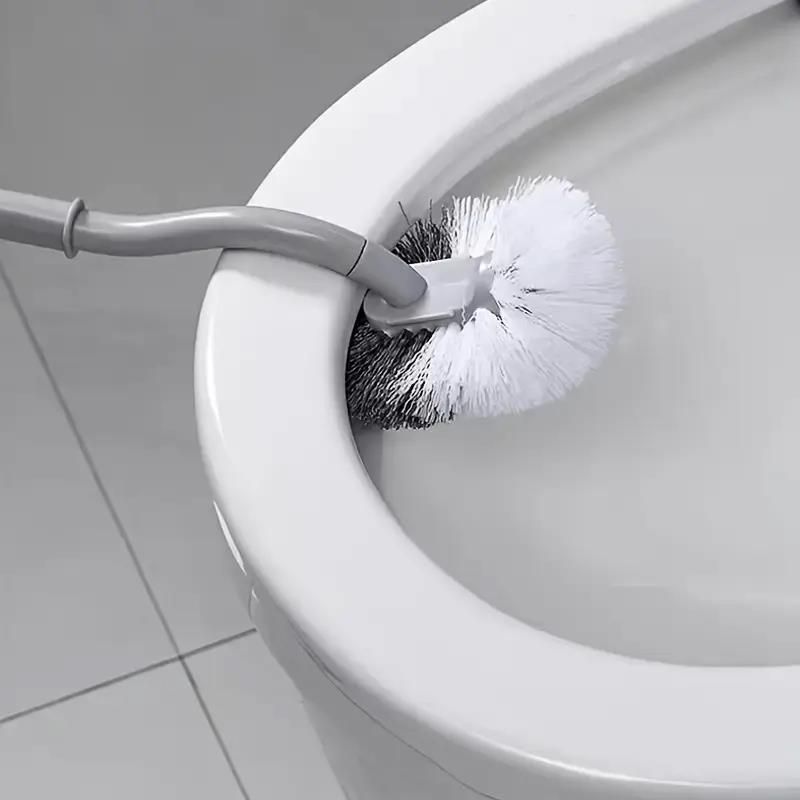 C-Type Toilet Brush with 18" Handle - Ergonomic Manual Cleaner for Bathroom/Kitchen/Car, Reusable & Portable (No Power)