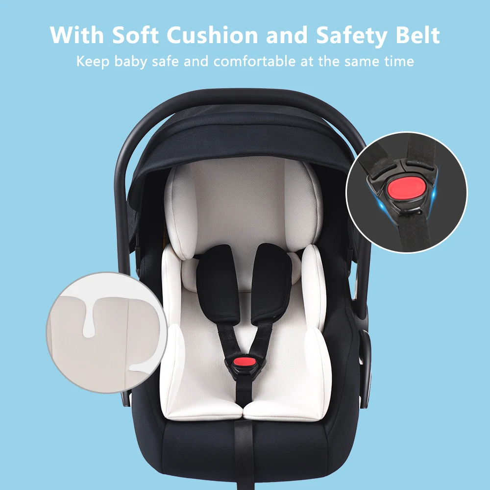 With soft cushion and side-impact protection, comfortable for baby to use. The car seat also can be placed on the baby stroller.