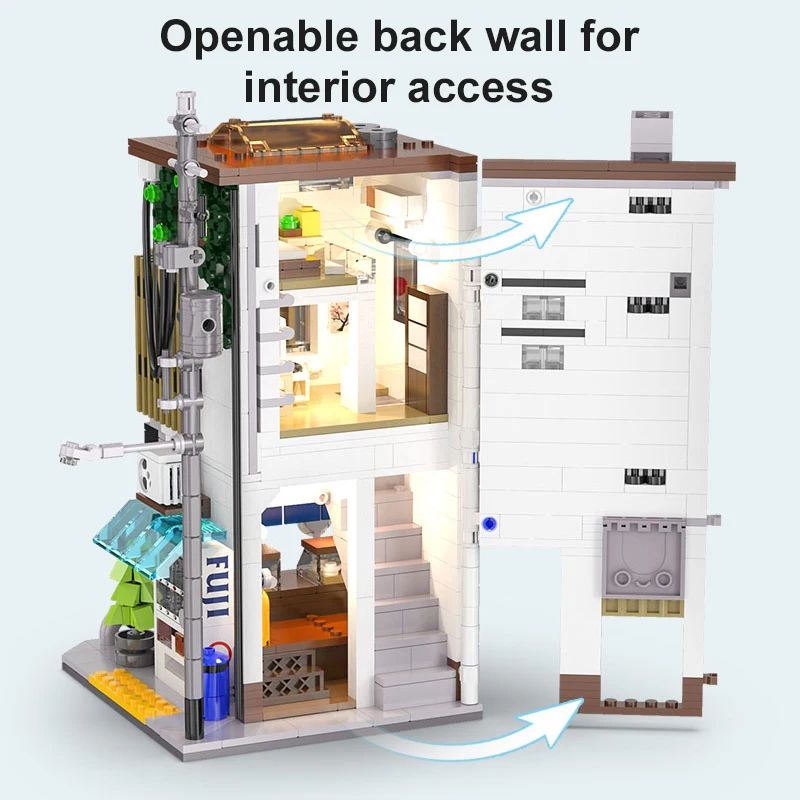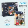 Cada LED City Japanese Street View Bricks Shop LED Japanese Steamed Bun House Architecture Building Blocks Summer Cafe Toys