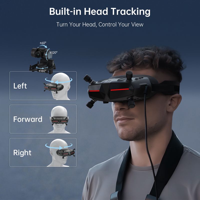 Built-In Head Tracking for Realistic Control: Integrated gyroscope enables real-time head tracking—seamlessly syncing your view with camera movement. Perfect for controlling gimbals or fixed-wing drones for a more intuitive flight perspective.