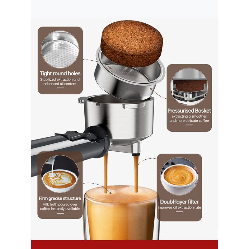 ★【Low Pressure Pre-Soaking Function】 Water fully soaks the coffee powder at low pressure, and then extract at high-pressure, so as to extract more fully and avoid the formation of channel effect.