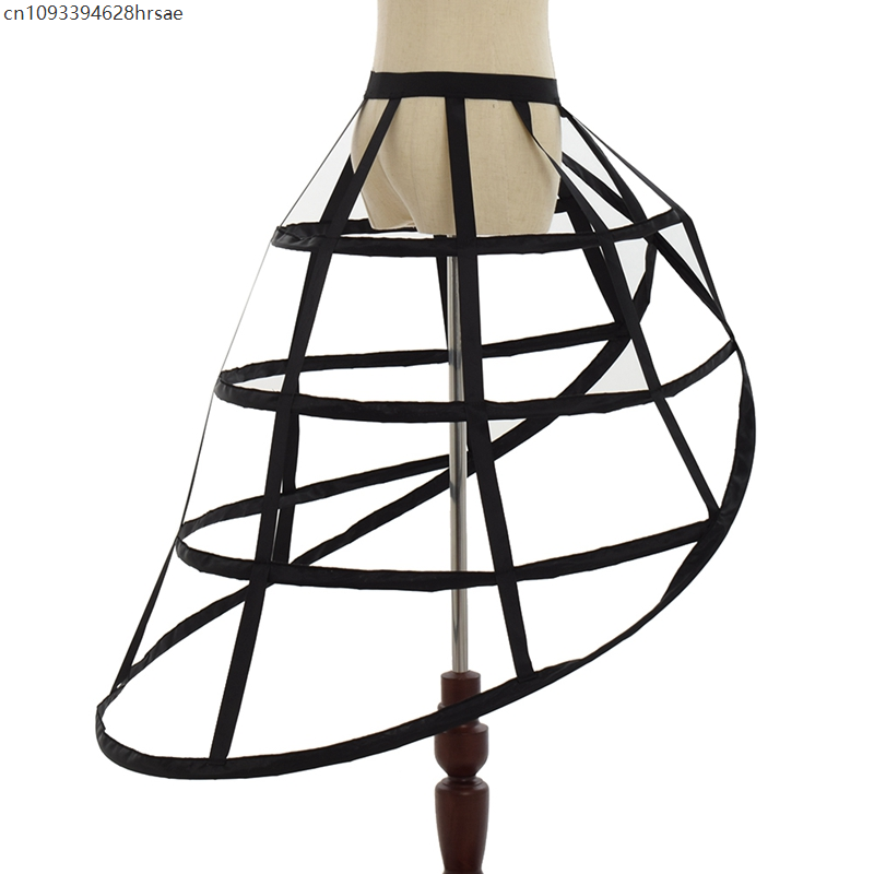 This black/white hoop cage skirt long pannier 4 hoops crinoline not only support skirts and dresses of the victorian era,medieval/renaissance dress,or your wedding gown,it is also a very impressive item when worn alone,you can decorated with flowers or fashion jewelry