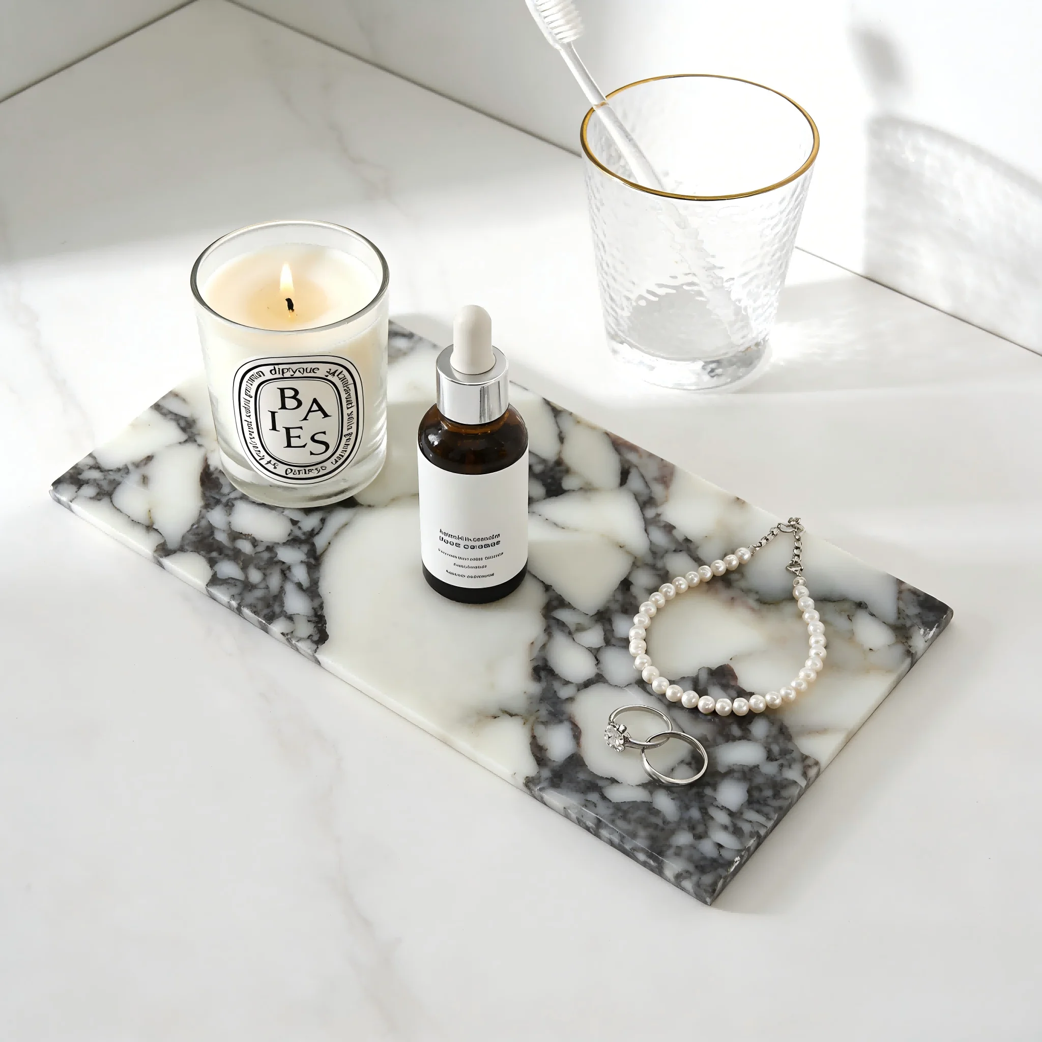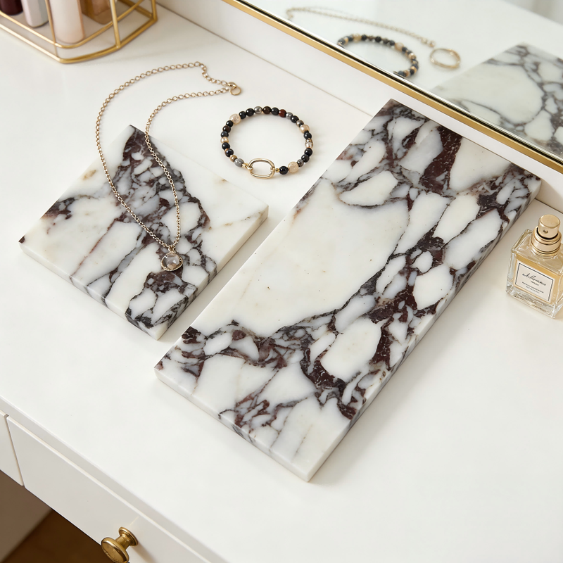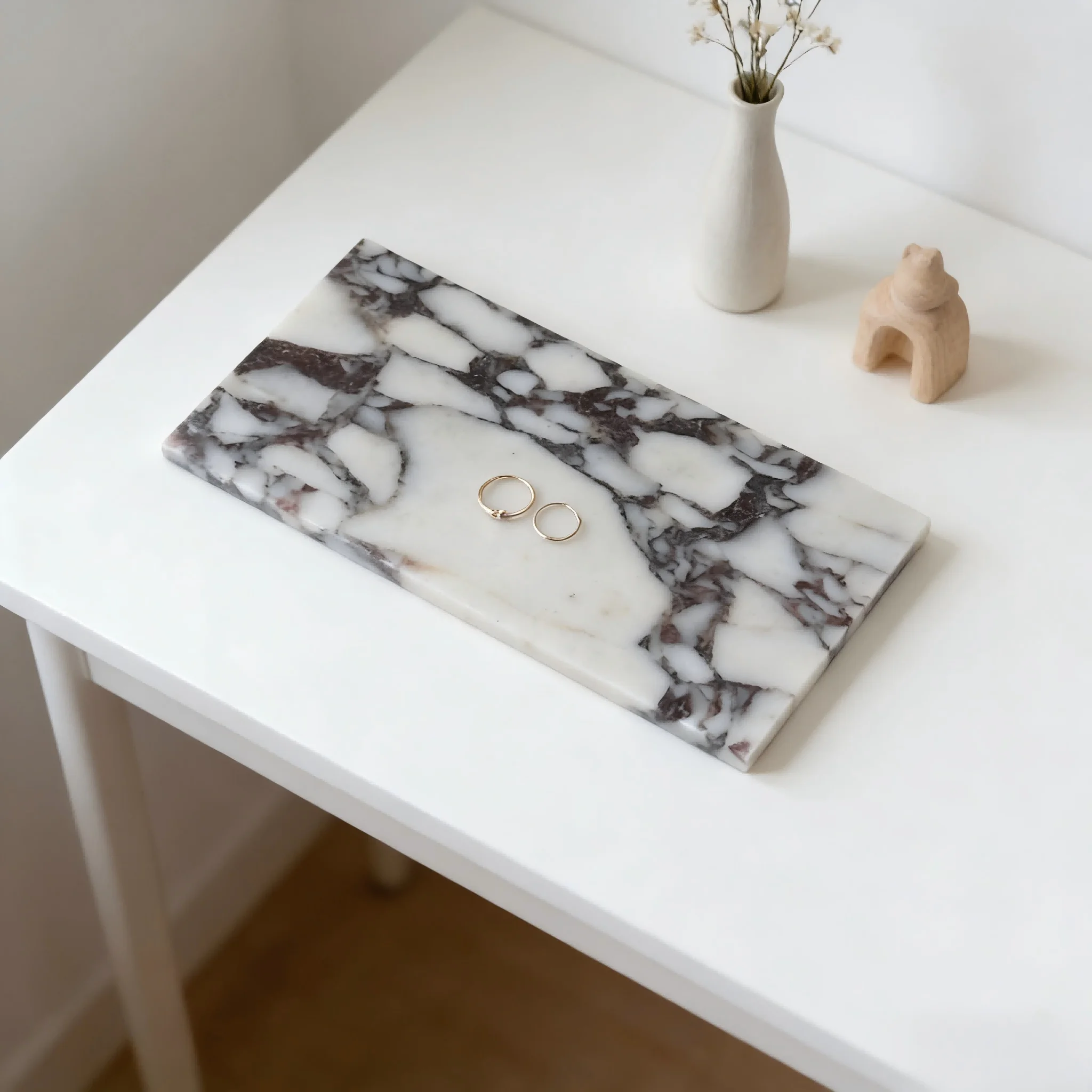 Calacatta Viola Marble Jewelry Holder, Rustic Vanity Tray for Makeup & Rings, Non-Slip Coasters, Handmade Wabi Sabi Decor