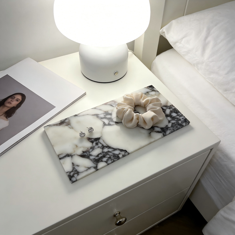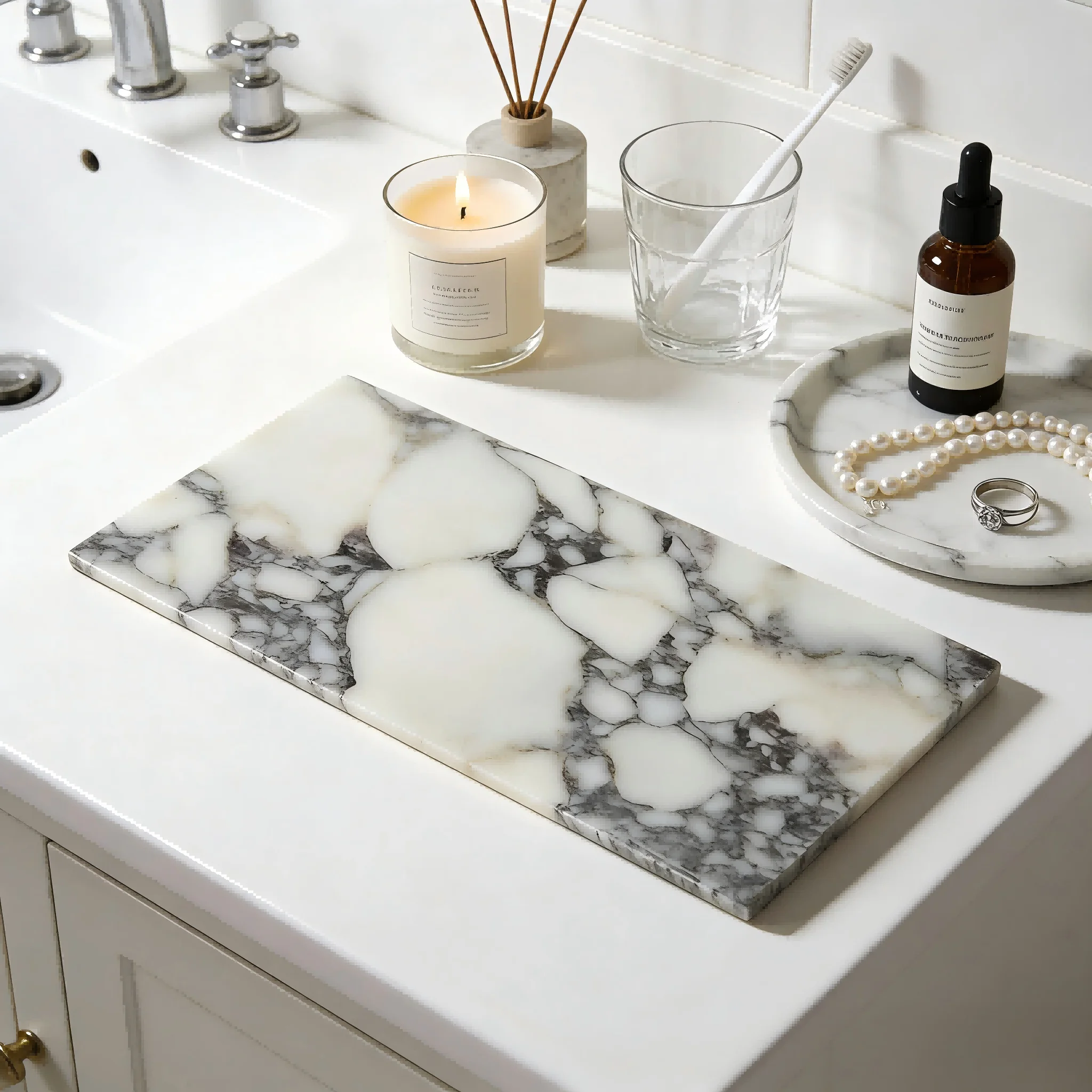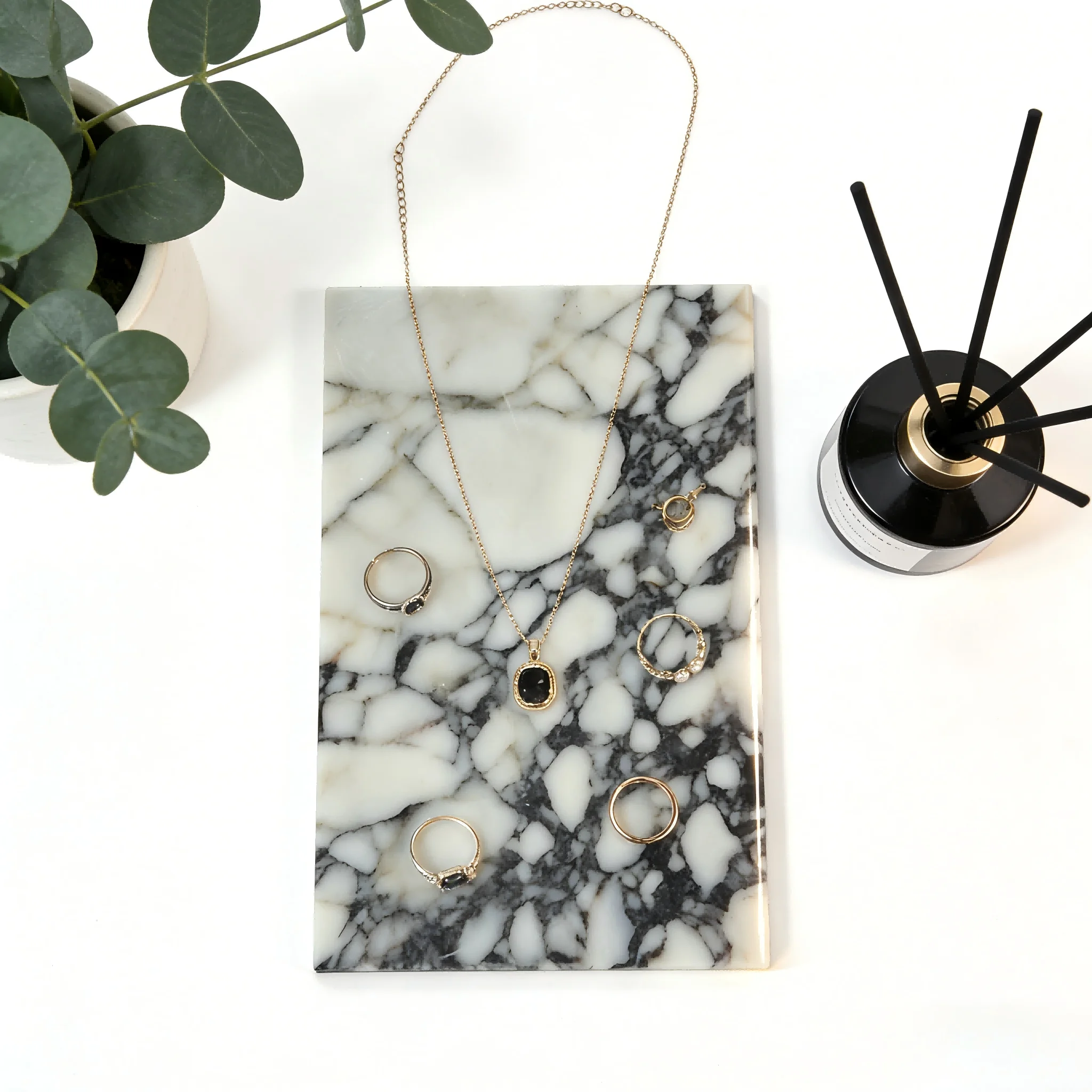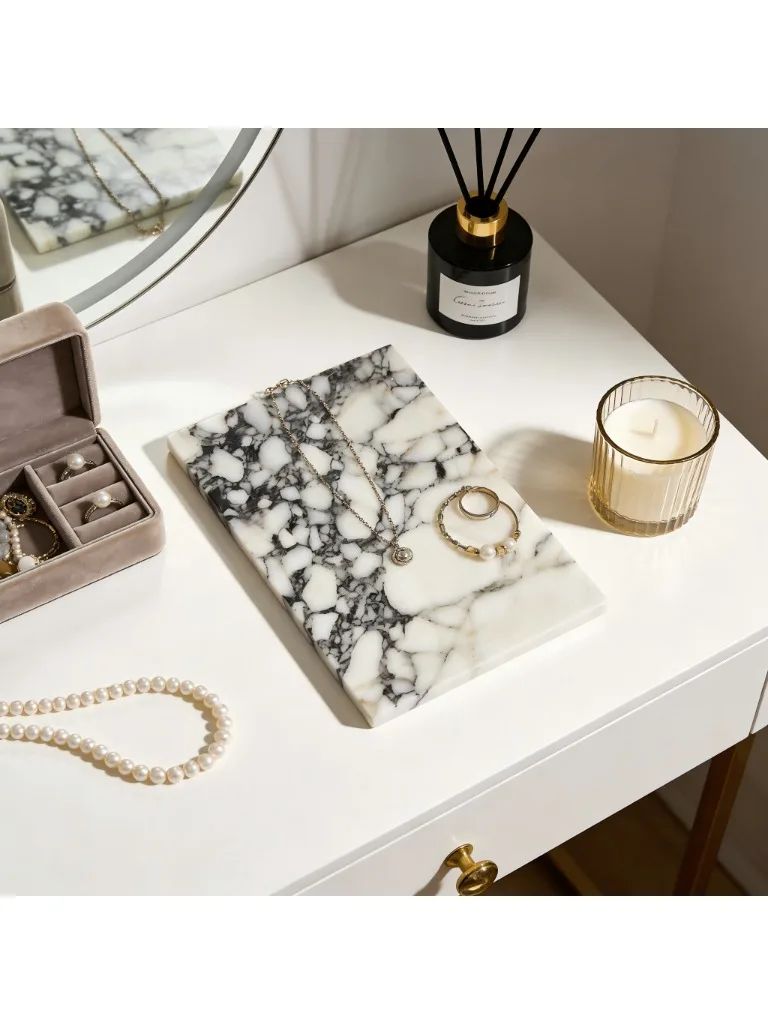Calacatta Viola Marble Jewelry Holder, Rustic Vanity Tray for Makeup & Rings, Non-Slip Coasters, Handmade Wabi Sabi Decor