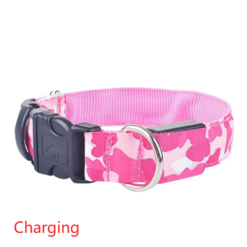 Camouflage pet supplies luminous dog collar Pink S Charging