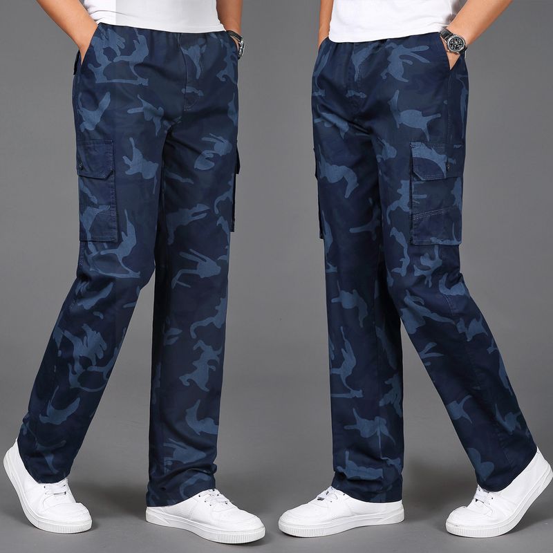 Camouflage Trousers Outdoor Multi-pocket Casual Loose Men's Trousers Navy Blue 2XL