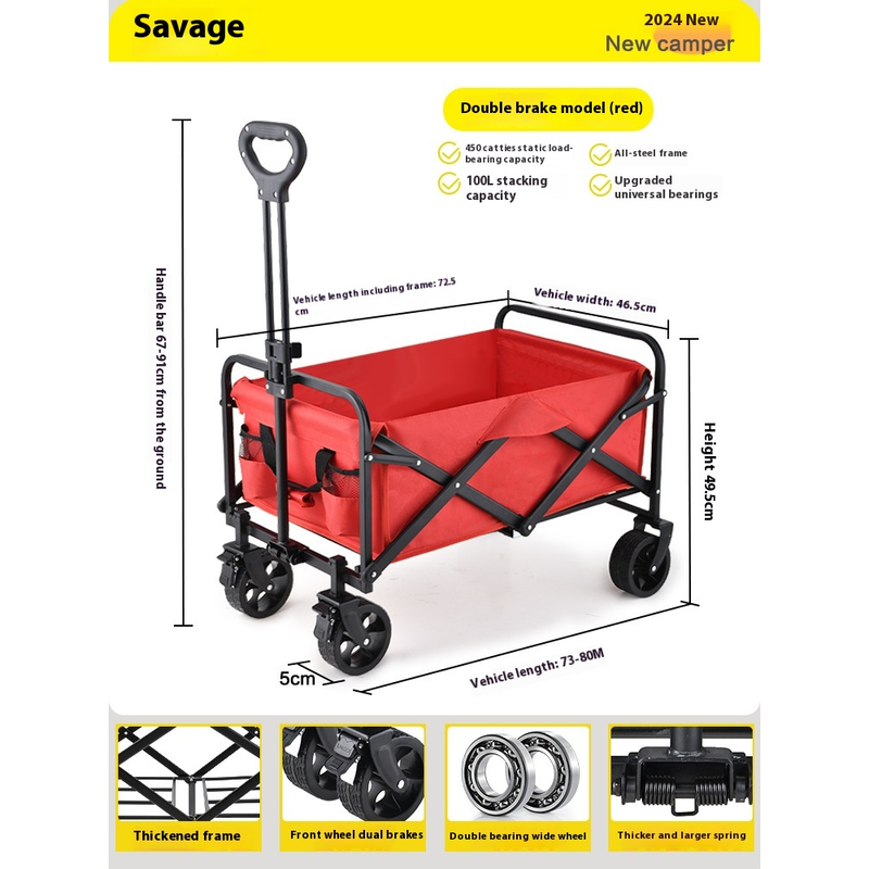 Camper Outdoor Foldable Hand Trolley Stall Trolley Red