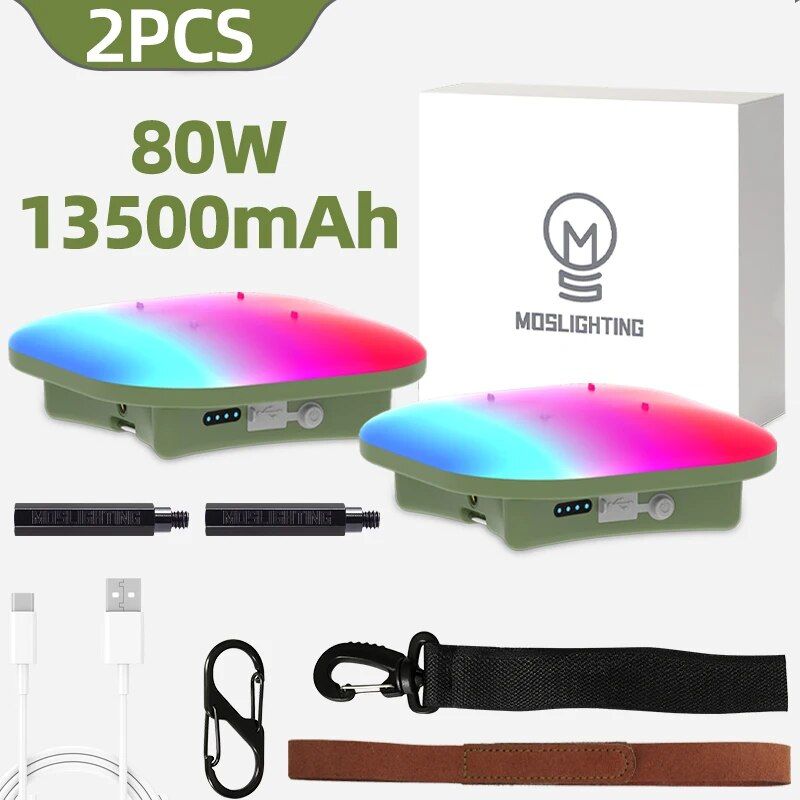 Moslighting camping lantern rechargeable, led smart light Bluetooth control by Tuya app, music sync RGB LED camping lights, 13500mAh outdoor light with magnet base, 16 million DIY colors tent lights