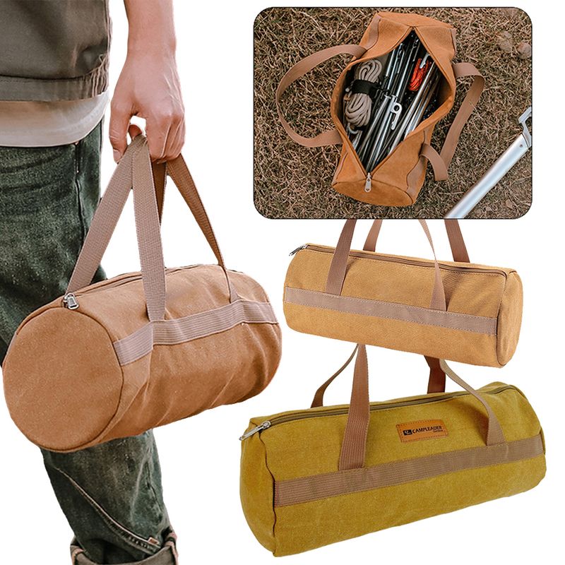 Camping Tool Storage Bag Cylinder Tent Ground Nail Wind Rope Hammer Pouch Canvas Large Capacity Handbag Outdoor Accessories