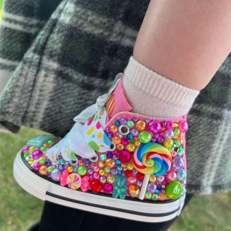 Candy Land Lollipop Custom Design For Girl Birthday Party Canvas Dollbling Handmade Rainbow Pearls Sneakers