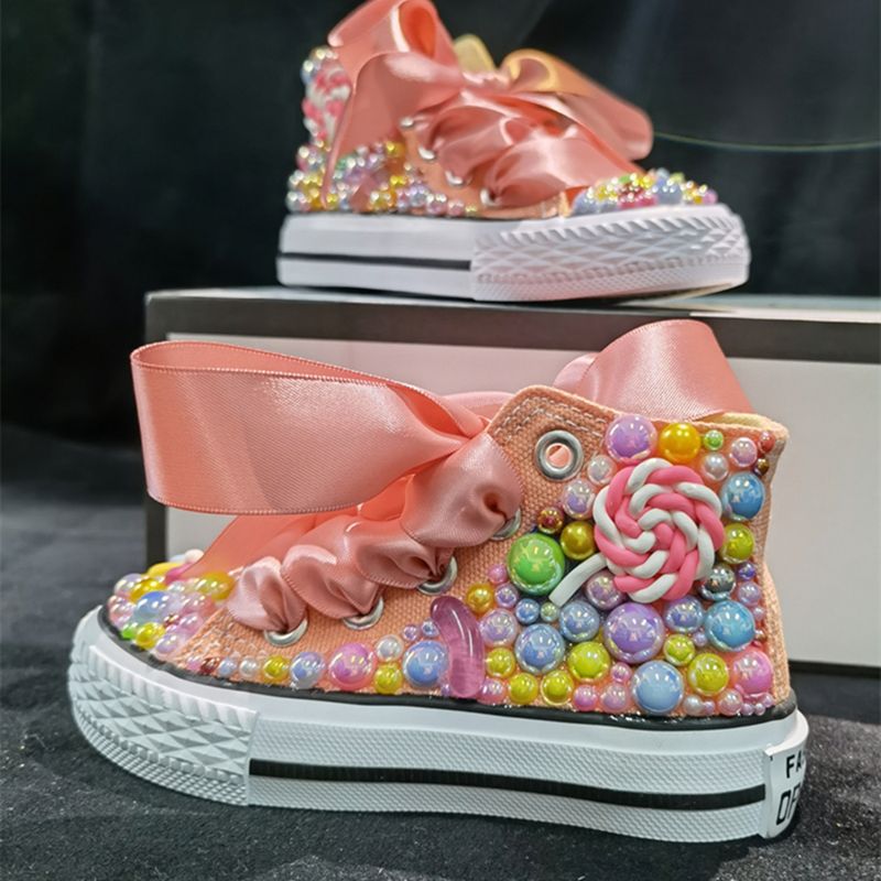 Candy Land Lollipop Custom Design For Girl Birthday Party Canvas Dollbling Handmade Rainbow Pearls Sneakers