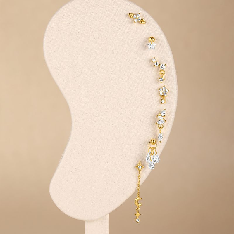 CANNER 1PC Four Pointed Star Moon Tassel Lotus Cartilage Spiral Puncture 925 Sterling Silver Stud Earring For Women Ins Earring